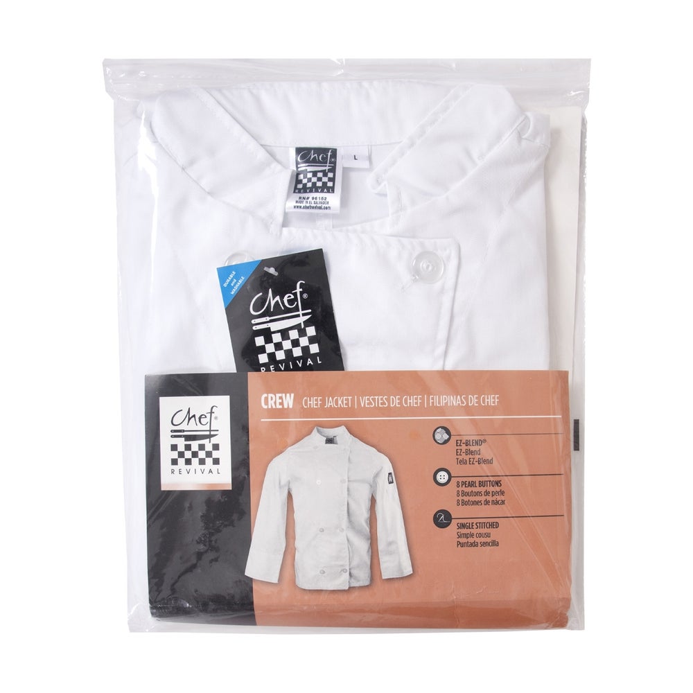 Chef Revival Chef Jacket, White, Large, Poly-Cotton Blend, 1/Each