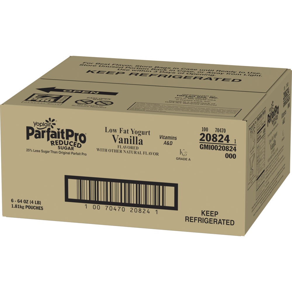 Yoplait Parfait Pro Lowfat Vanilla Yogurt, Reduced Sugar, Bulk Pouch, 64 Oz Bag, 6/Case