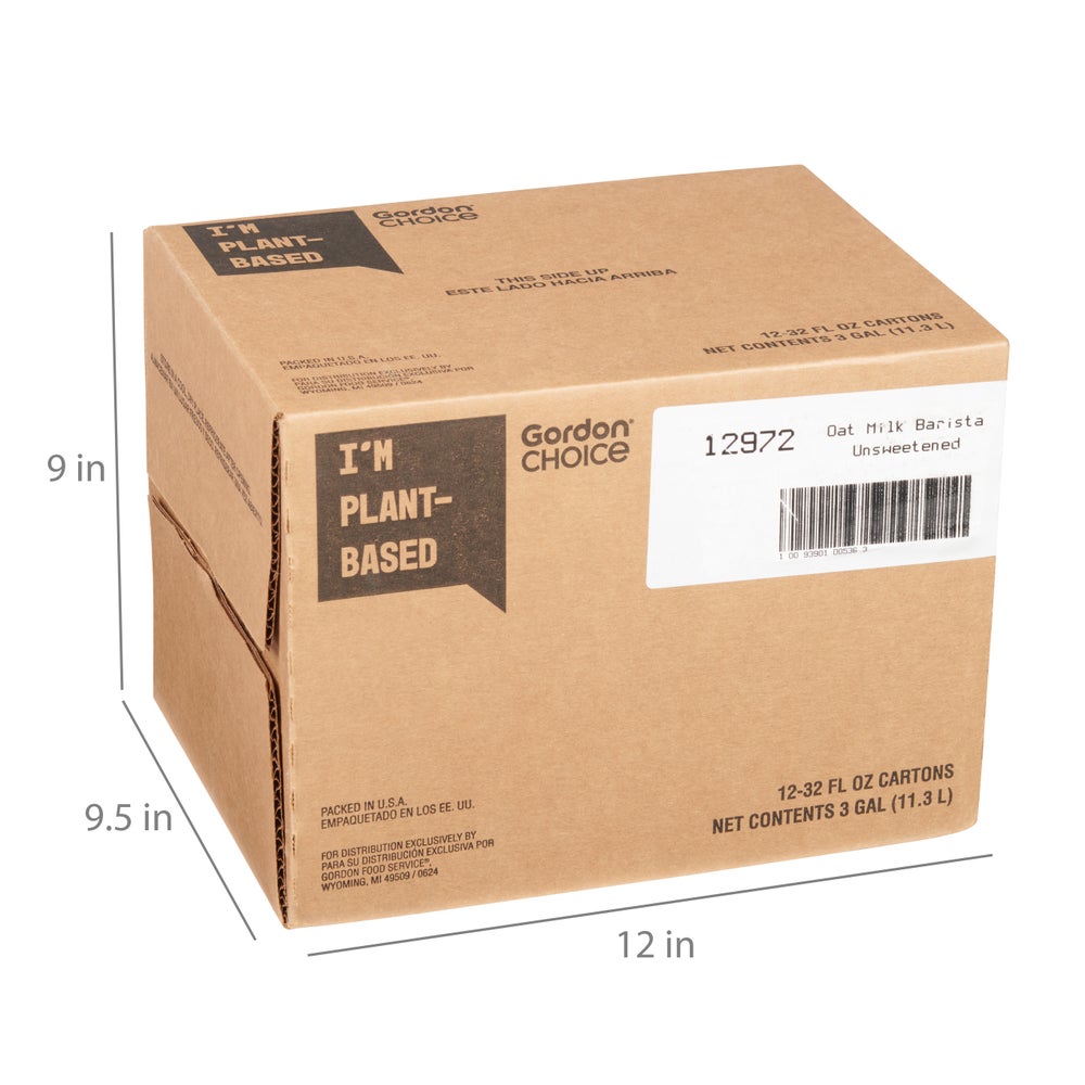 Gordon Choice Barista Blend Oat Milk, Shelf-Stable, 32 Fl Oz Carton, 12/Case