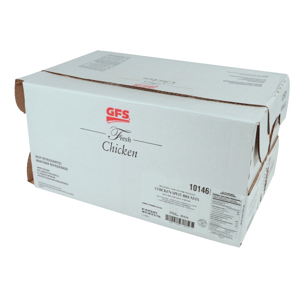 These split chicken breasts are trimmed to a back-on, bone-in, and wing-off product, suitable for a variety of applications. Each case includes an assortment of controlled vacuum packed chicken types and styles, all of which have been frozen from a previously fresh state. Brand may vary.
