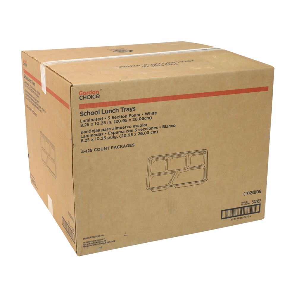 Trays, 5-Compartment School Lunch, 8.25 x 10.25 Inch, Foam, White, Polystyrene, 125 Ct Package