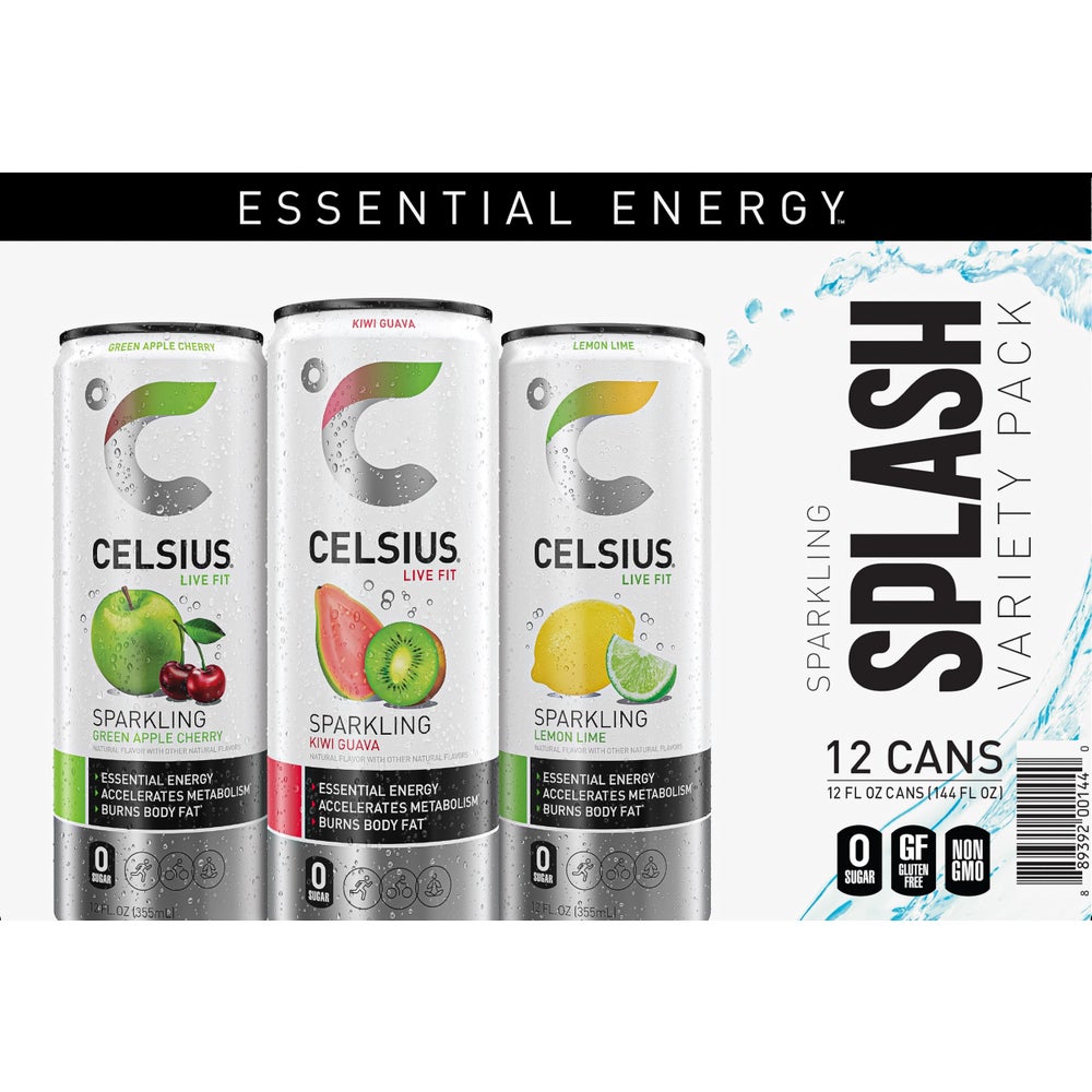 Celsius Splash Energy Drink, Single-Serve, Variety Pack, 12 Fluid Ounce, 12 Ct Can, 2/Case