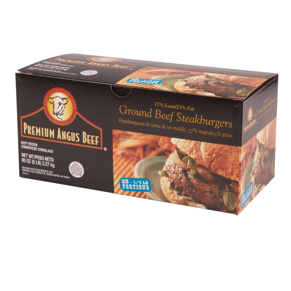 Beef Steakburger Patties, Ground, USDA Choice, 77% Lean, 4 Ounce, IQF, 5 Lb Package