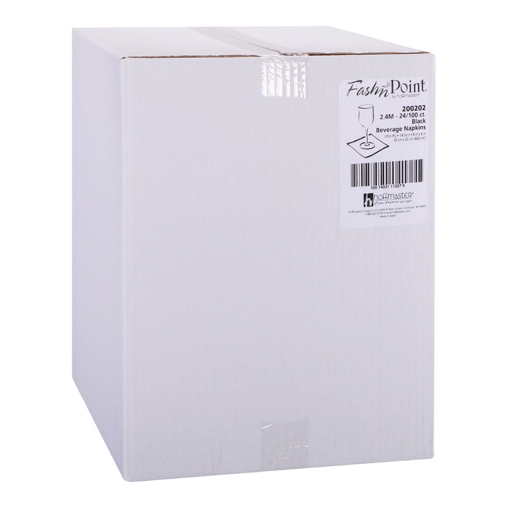 Hoffmaster Ultra Ply Beverage Napkins, Black, 1/4 Fold, 8 x 8 Inch, 100 Ct Package, 24/Case