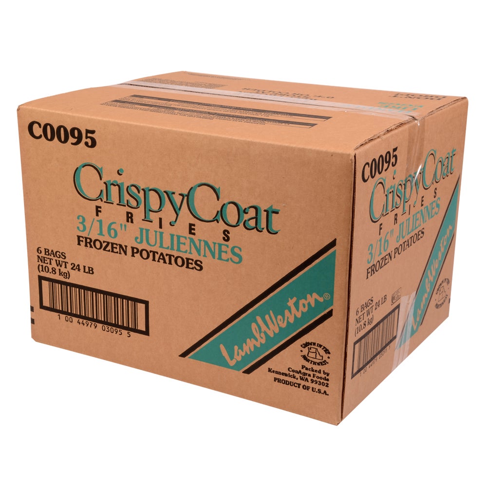 Crispycoat 3/16 Inch Long Fancy Julienne Cut French Fries, Coated, Skin-On, Bakeable, Frozen, 4 Lb Bag, 6/Case