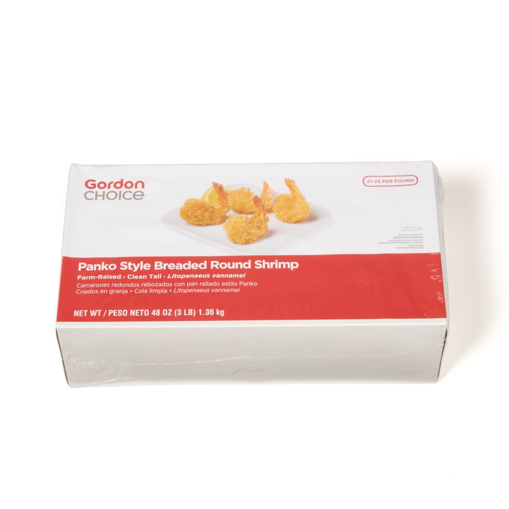 Gordon Choice Panko Breading Shrimp, Round Clean Tail, 21-25 Count per Pound, Raw, IQF, 3 Lb Package, 4/Case