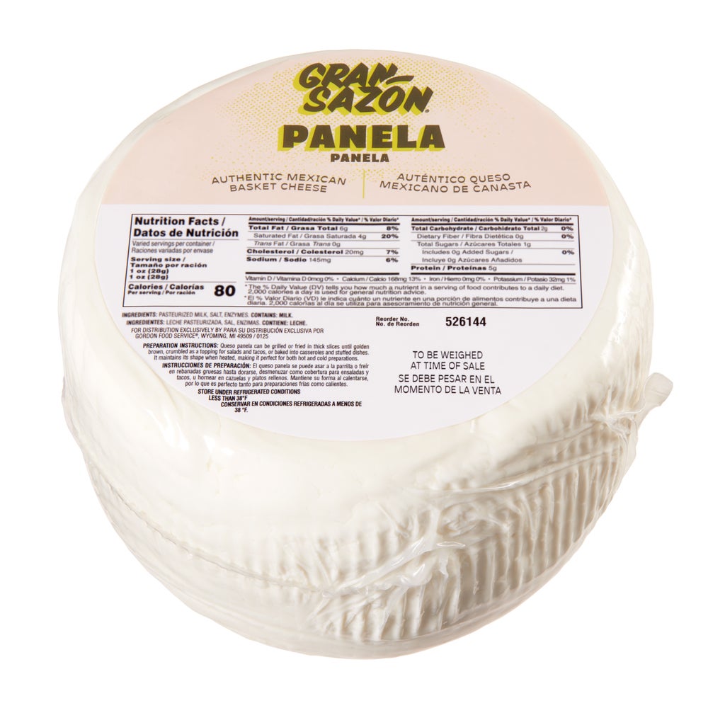 Gran Sazon Queso Panela Cheese, Wheel, 5 Lb Avg Wheel, 2/Case