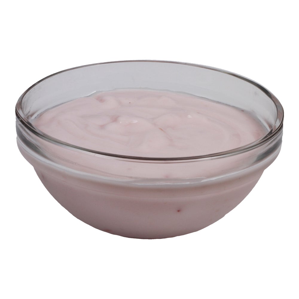 - Deliciously thick, strained strawberry-raspberry gluten-free Greek yogurt has fruit blended in with 12 grams of protein and a thicker texture in 5.3 ounce single serve cup. Without colors or flavors from artificial sources, it is blended with real fruit and has a delicious taste crafted from Yoplait.