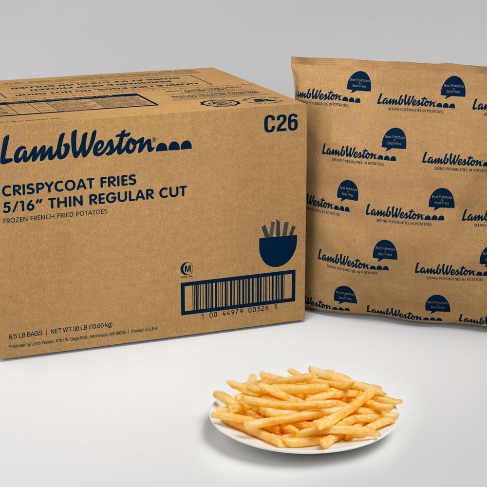 Crispycoat 5/16 Inch Extra Long Fancy Regular Cut French Fries, Seasoned & Coated, Bakeable, Frozen, 5 Lb Package, 6/Case