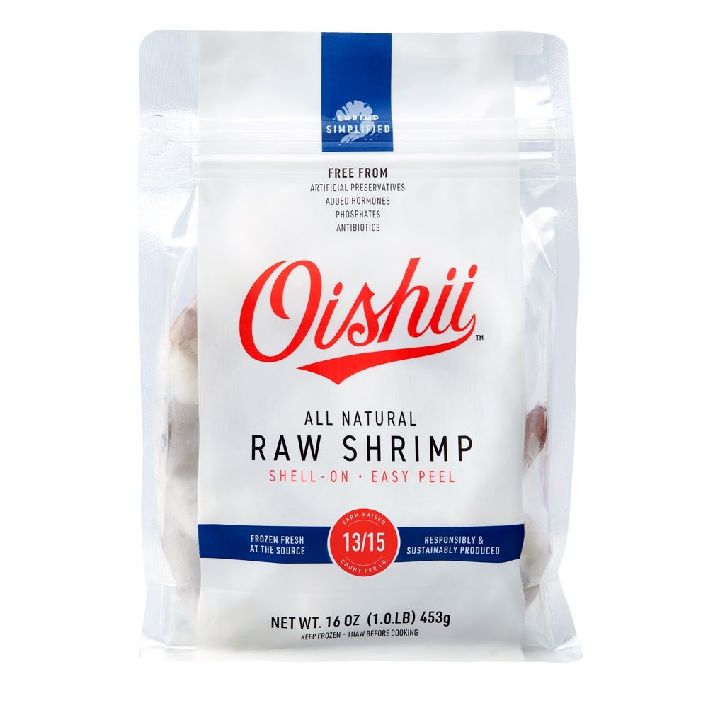 Oishi Shrimp, EZ Peel, 13-15 Count per Pound, Raw, Frozen, 1 Lb Package, 20/Case