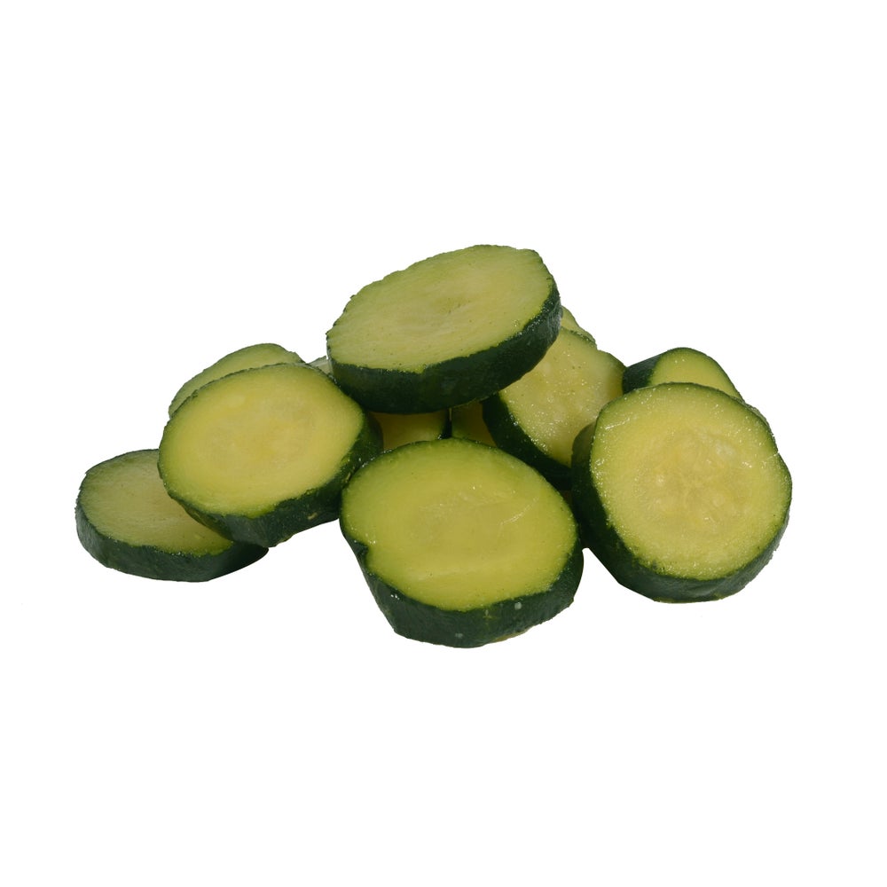 - You can offer beautiful zucchini all year round. This zucchini has been harvested at the peak of flavor, sliced and frozen. Hand-picked and hand-sorted, this zucchini is sliced 3/8-inch thick retaining a 1-2 inch diameter for recipe consistency. Left unseasoned, it is ready for a signature treatment.