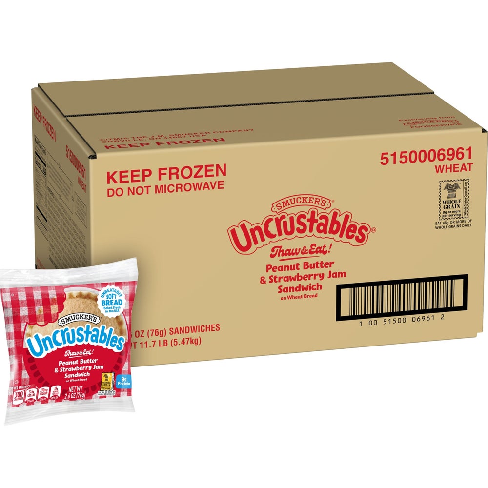 Sandwiches, Peanut Butter & Strawberry Jelly Uncrustable, Whole Grain, Frozen, 2.6 Ounce, 1 Ct Package, 72 Per Case