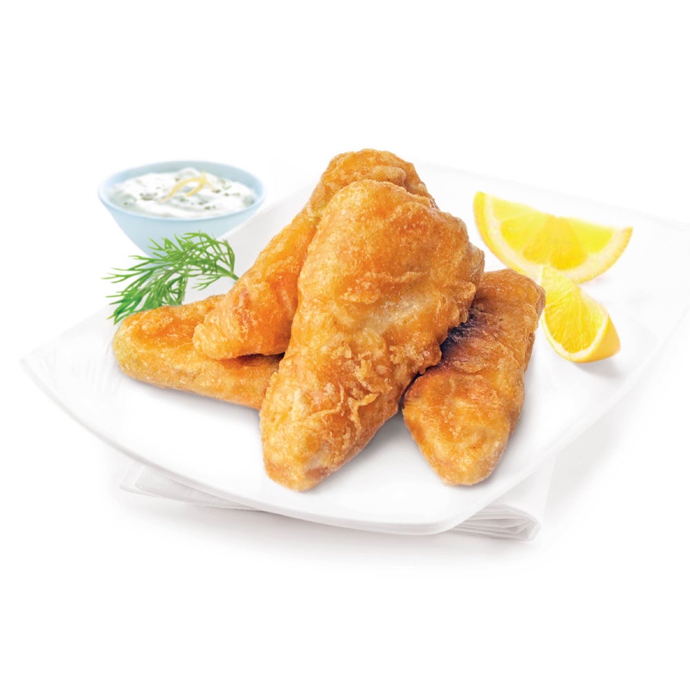 Fishless Fillets, Golden Battered, with TVP, Cooked, Frozen, 10 Lb Bag