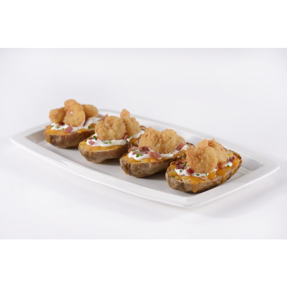 These tail-off, peeled shrimp are lightly coated in a unique flour system consisting of buttermilk batter and a light dusting of flour to create a crispy popcorn shrimp ideal for a variety of applications. The special coating creates a made-from-scratch appearance while enabling convenient preparation and labor time. They are ideal as a salad topper, sandwich filler or appetizer.