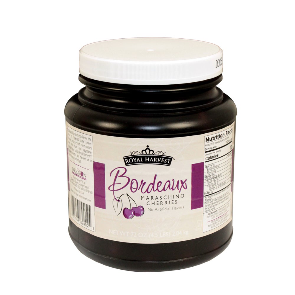 Royal Harvest Bordeaux Red Maraschino Cherries, with Stems, 0.5 Gal, 2/Case