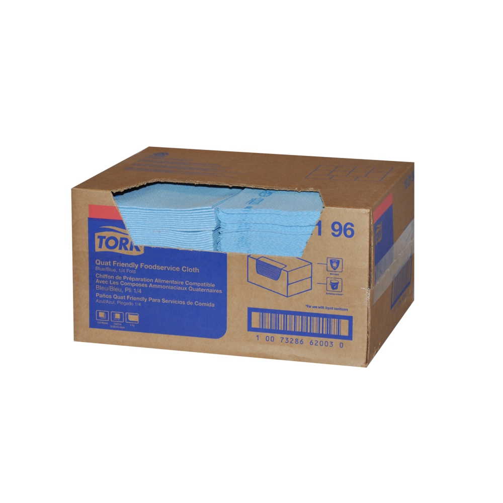 Tork Quat Friendly Foodservice Cleaning Towels Self Dispensing: Avoid overusing sanitizers and detergents with these Tork foodservice towels, made with quat-friendly technology that stops quat sanitizer from breaking down prematurely. Towels are also specially treated to inhibit odor-causing substances for a better front-of-house experience. These low-linting towels are easy to rinse and dry and come in several colors that help you designate areas of use.