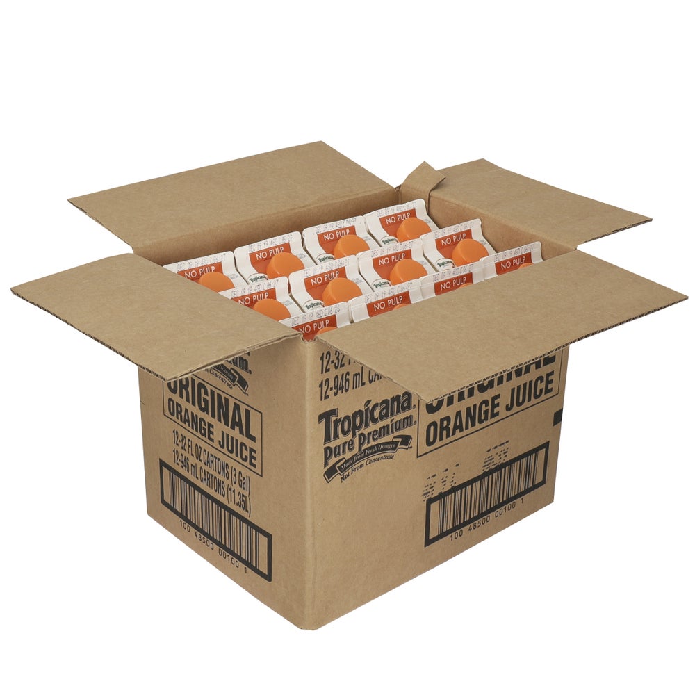 Tropicana 100% Not from Concentrate Some Pulp Orange Juice, Refrigerated, 32 Fl Oz Carton, 12/Case
