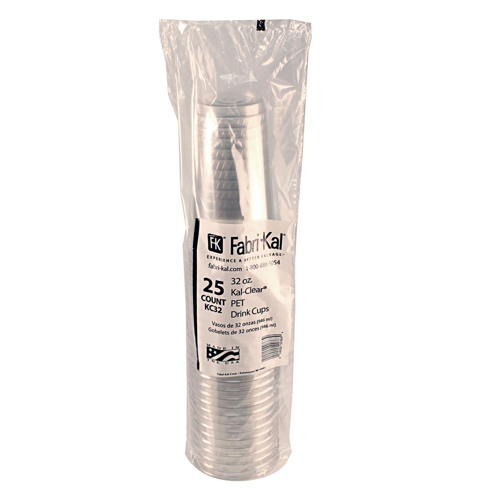 Fabri-Kal 32 Ounce Plastic Cold Cups, Clear, PET, 25 Ct Bag, 12/Case