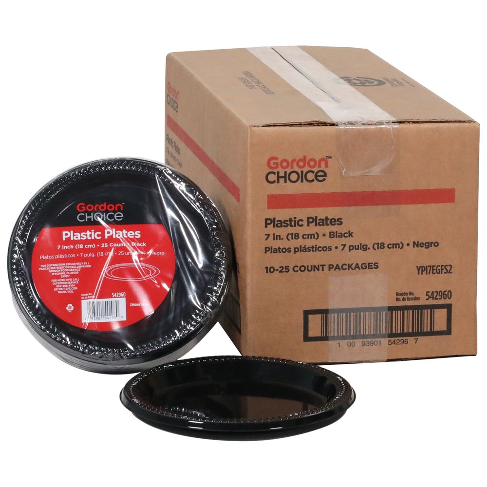 Gordon Choice 7 Inch Plastic Plates, Black, Polystyrene, 25 Ct Package, 10/Case