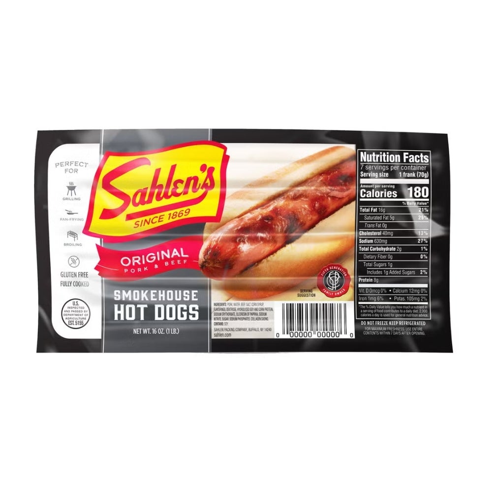 Sahlen's Beef & Pork Franks, 7 Inch, Fresh, 1 Lb Package, 12/Case