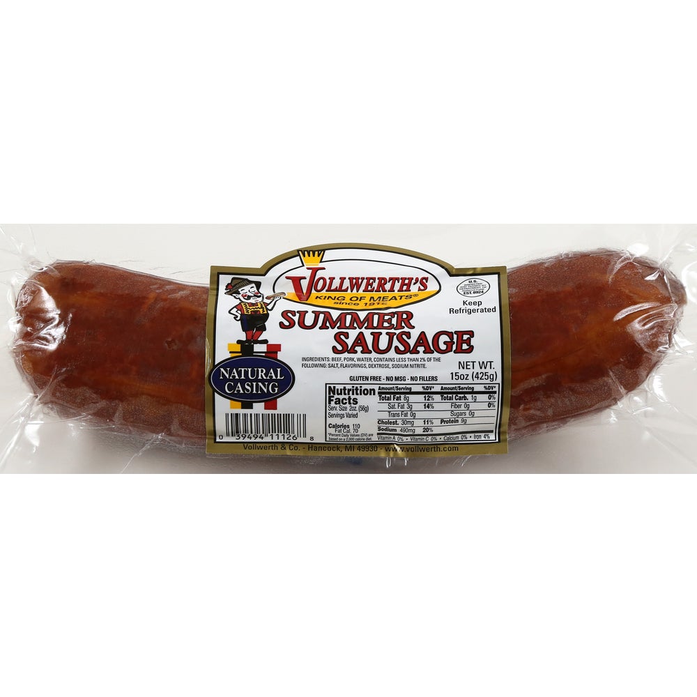 Vollwerth & Company Summer Sausage, with Natural Casing, Fresh, 15 Oz Package, 12/Case