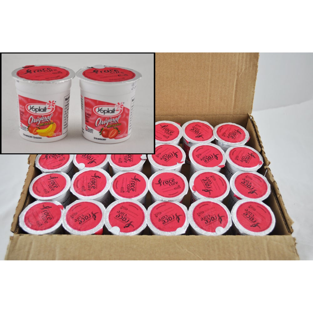 - Yoplait Original Gluten-Free Yogurt variety pack in low fat strawberry and strawberry banana flavors made with real fruit. Packaged in loose, single serve four ounce cups for quick placement or serving as part of a complete meal.
