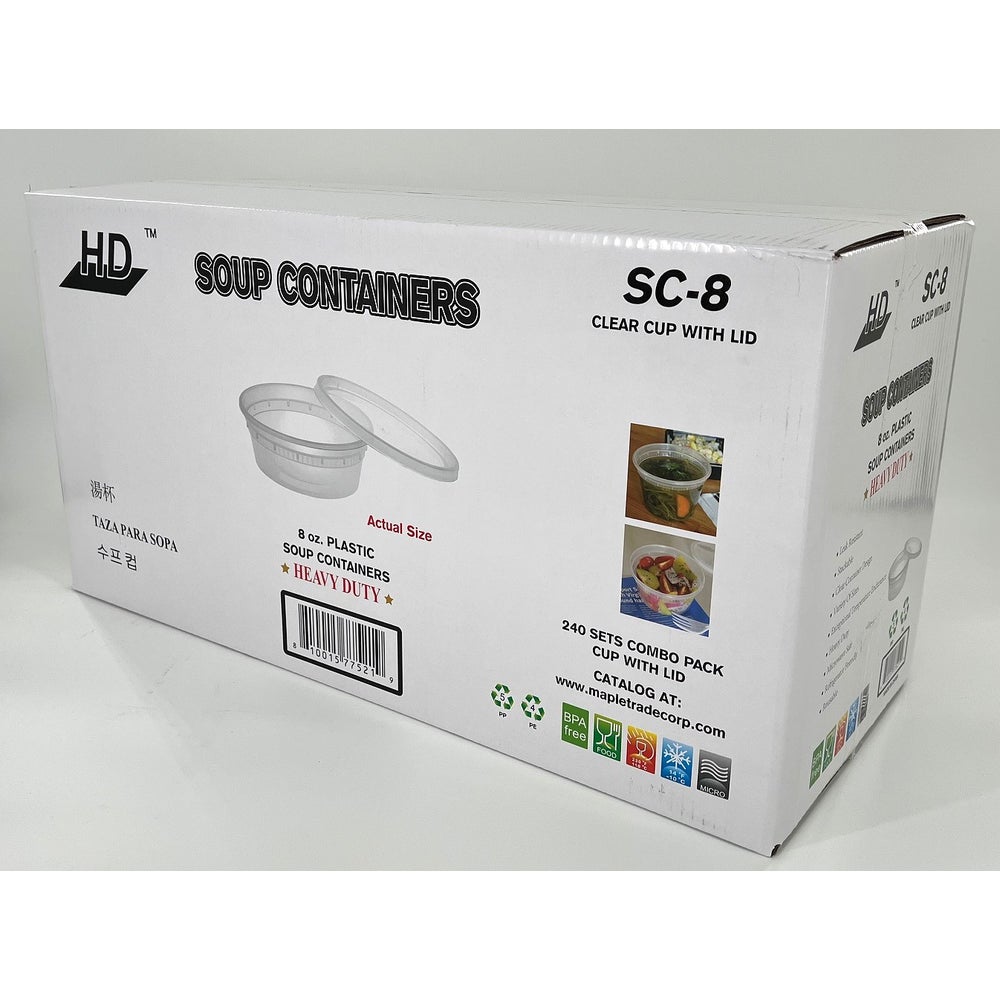 HD 8 Ounce Plastic Deli Soup Containers, with Lids, 240 Ct Package, 1/Case
