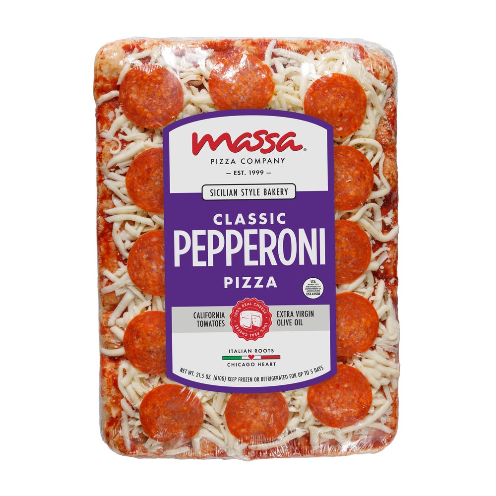 Massa Pizza Company Pepperoni Thick Crust Pizza, 9 x 13 Inch, Frozen Individually Wrapped, 21.5 Oz Package, 8/Case
