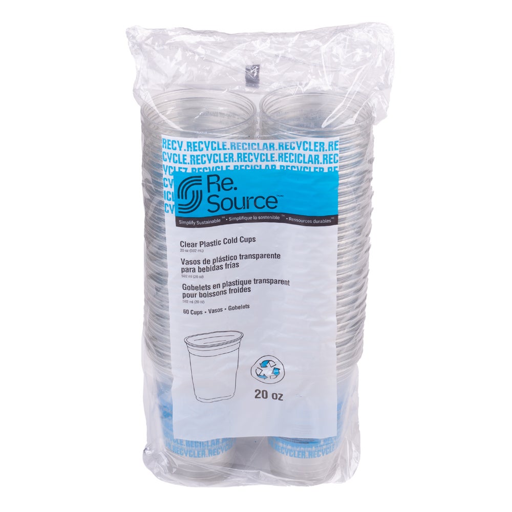 Re.Source 20 Ounce Plastic Cups, Clear, Printed, RPET, Recyclable, 60 Ct Bag, 12/Case