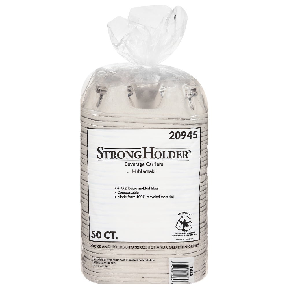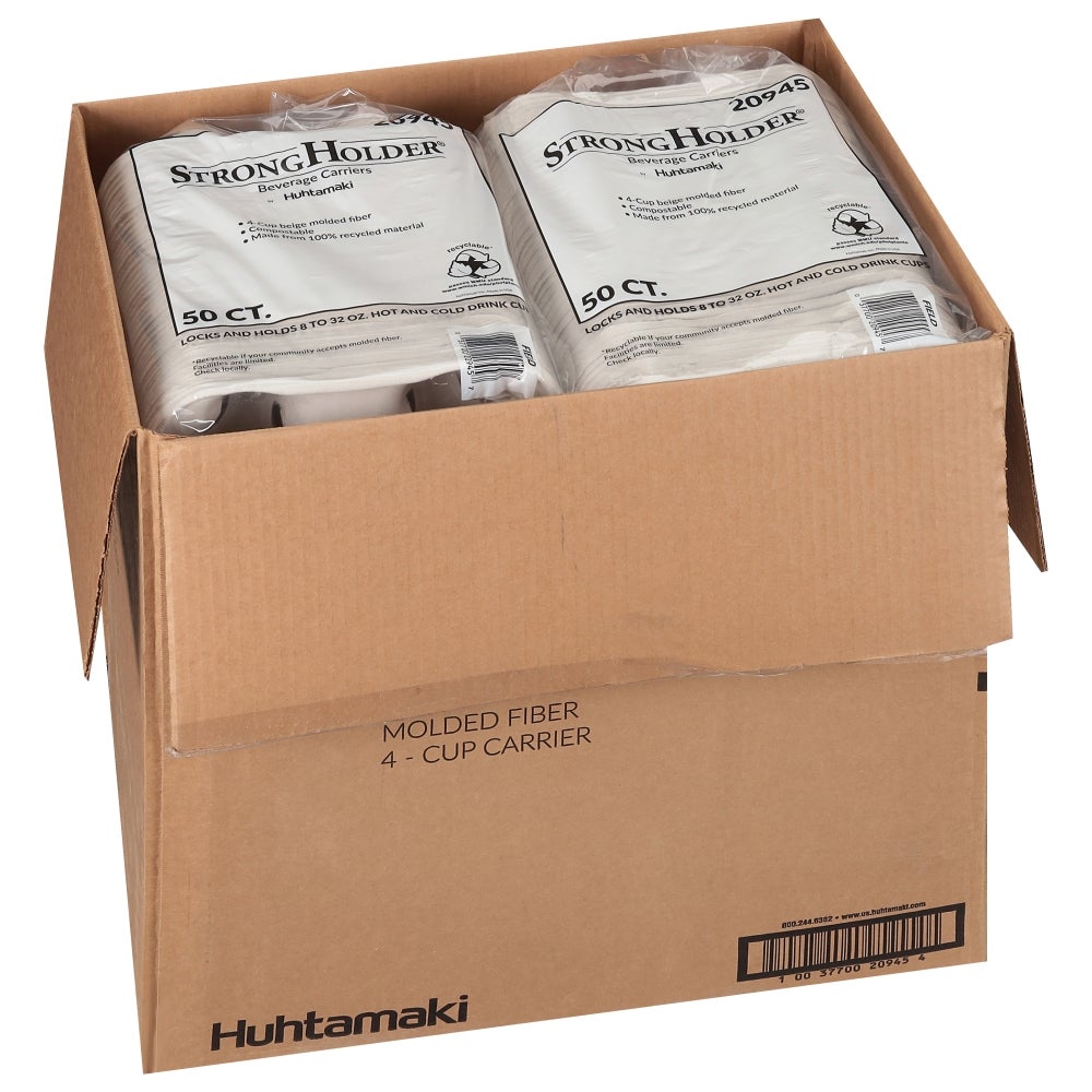 Strongholder 4-Cup Molded Fiber Beverage Carrier, Beige, 50 Ct Package, 4/Case