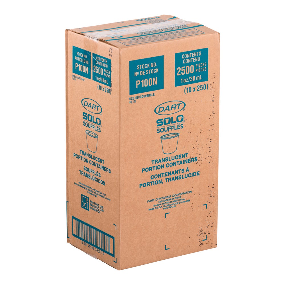 Dart 1 Ounce Plastic Souffle Portion Cups, Translucent, 1 Ounce, 250 Ct Package, 10/Case
