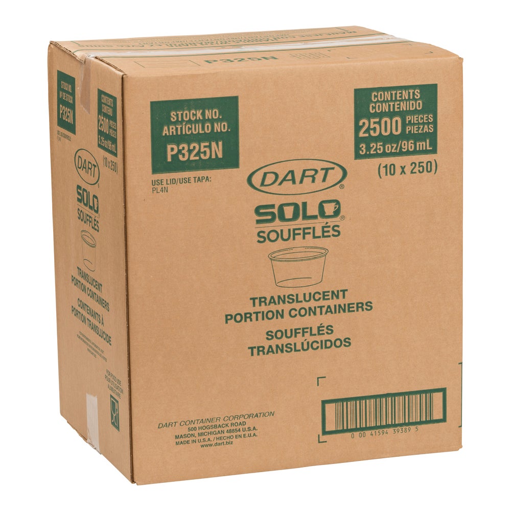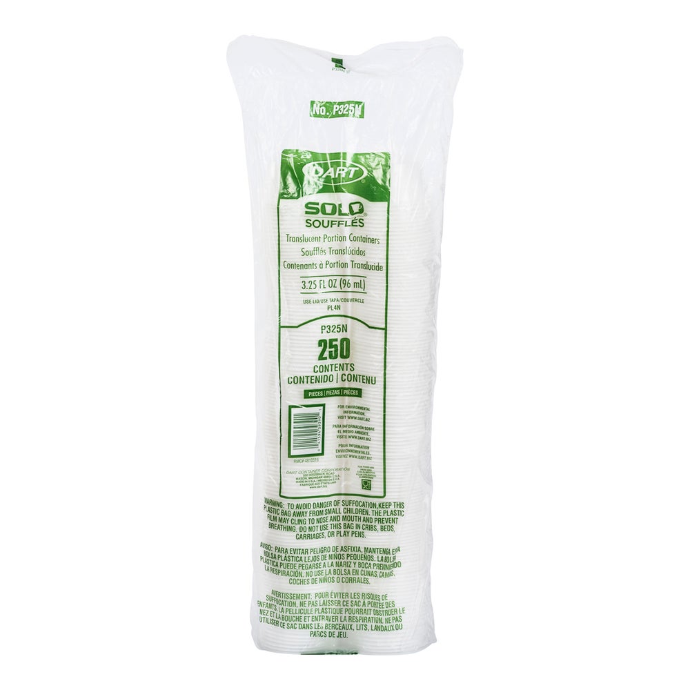 Dart 3.25 Ounce Plastic Souffle Portion Cups, Translucent, 3.25 Ounce, 250 Ct Package, 10/Case