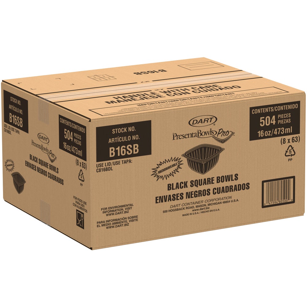 Dart 16 Ounce Plastic Bowls, Black, Square, 16 Ounce, 63 Ct Package, 8/Case
