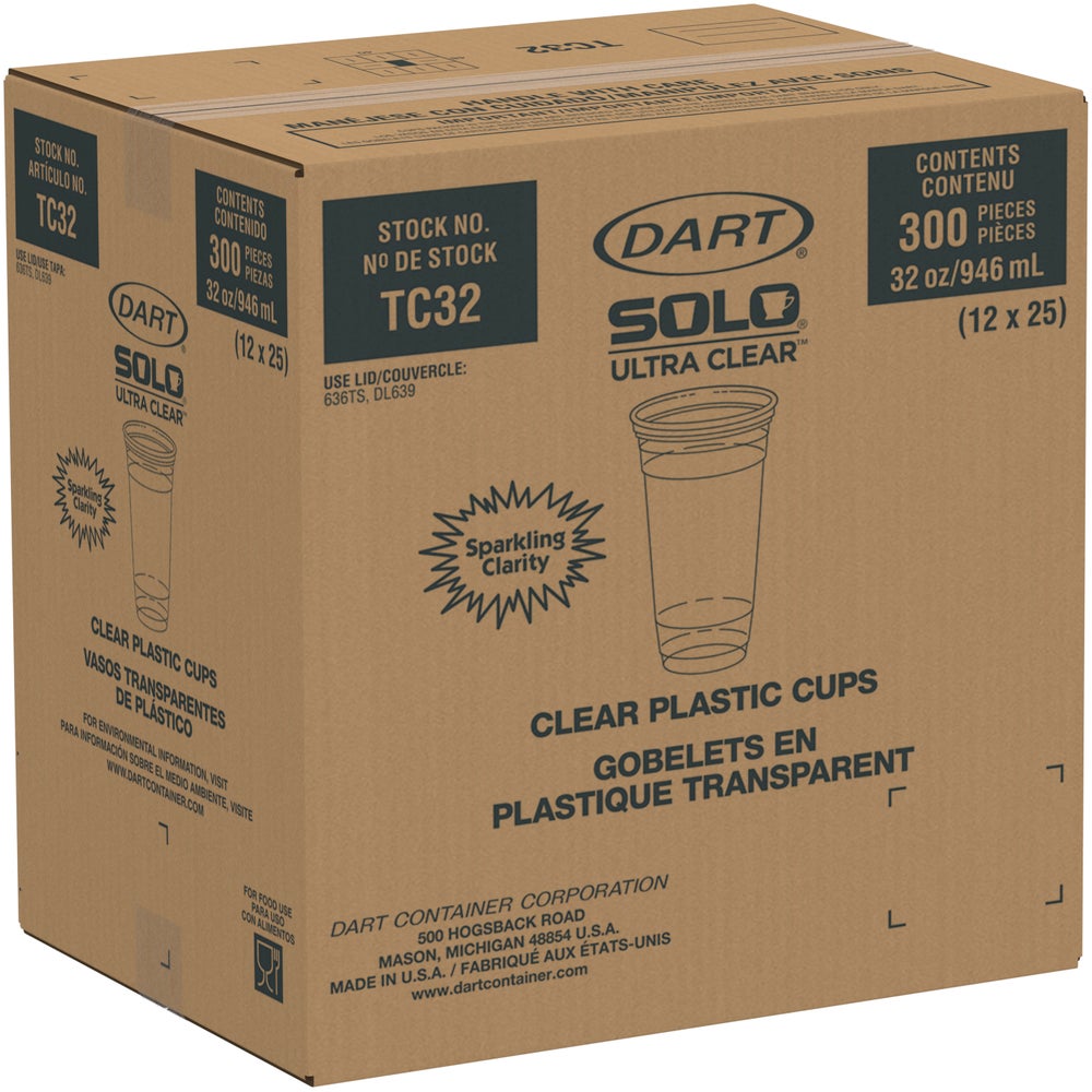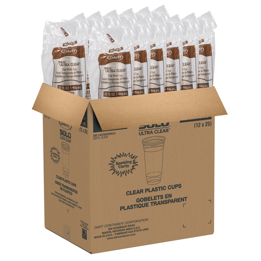 Dart 32 Ounce Plastic Cups, Clear, 32 Ounce, 25 Ct Package, 12/Case