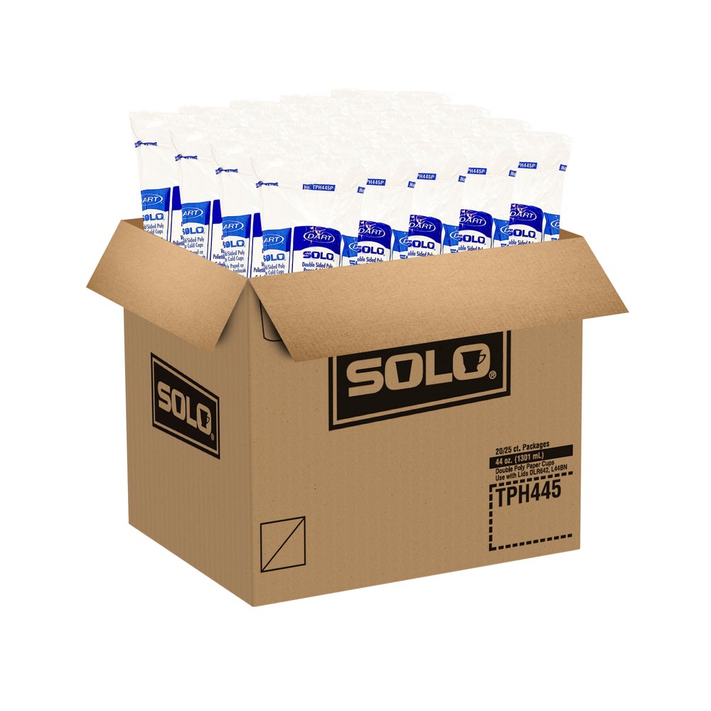 Dart 44 Ounce Paper Cold Cups, White , 44 Ounce, 25 Ct Package, 20/Case