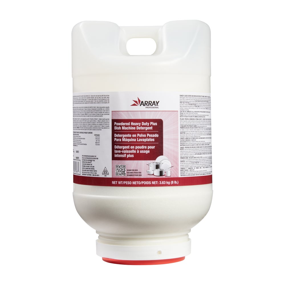 Array Professional Powdered Dishmachine Detergent, All-Temperature, Heavy-Duty Plus, 8 Lb Jug, 4/Case