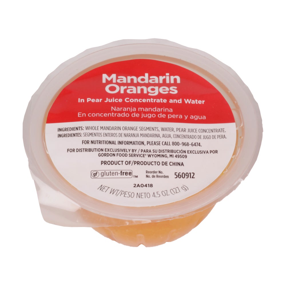 Gordon Choice Whole Mandarin Orange Segments, in Juice, Cup, 4.5 Oz Package, 36/Case