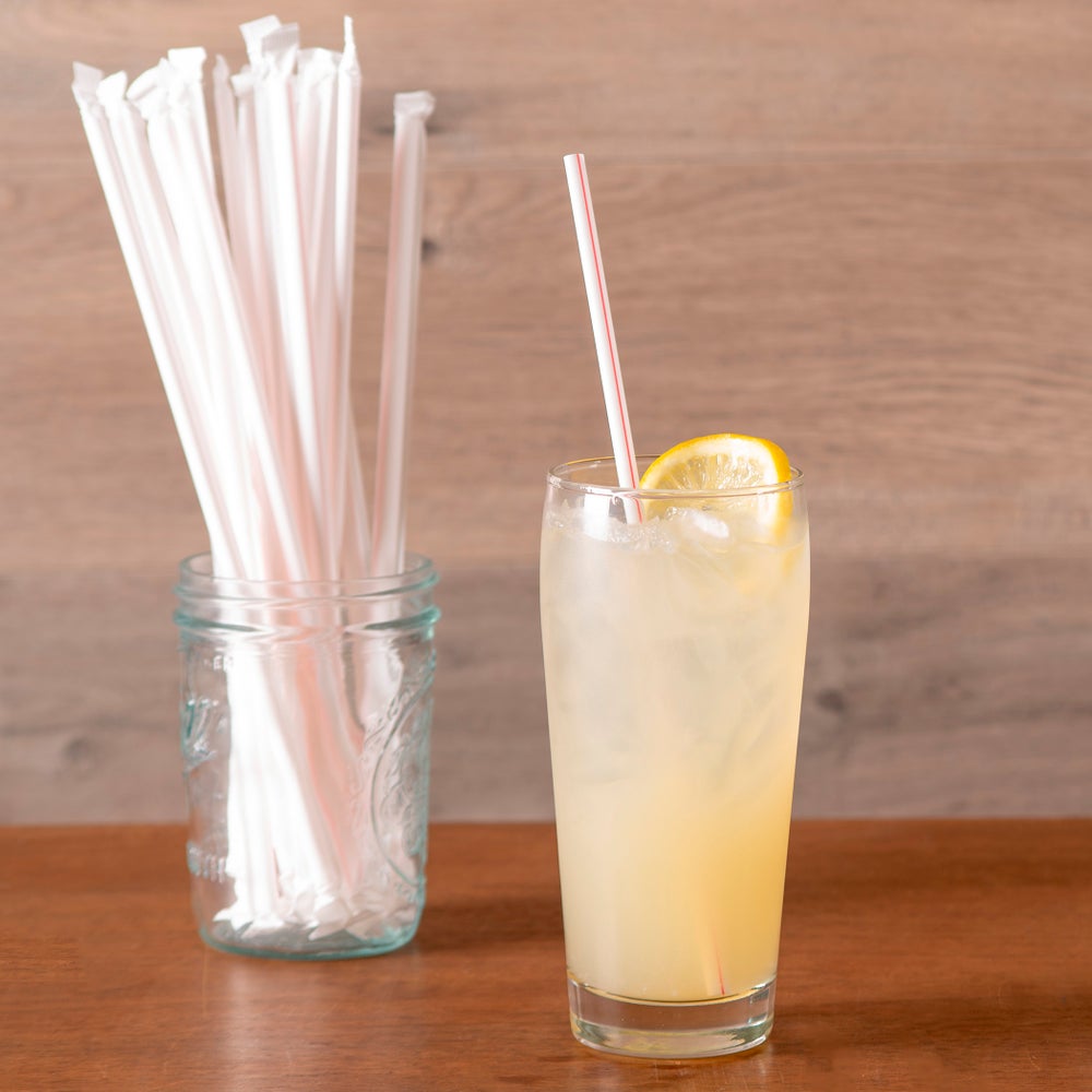 Gordon Choice 10.25 Inch Plastic Jumbo Straws, White & Red, Paper-Wrapped, Polypropylene, 500 Ct Package, 4/Case