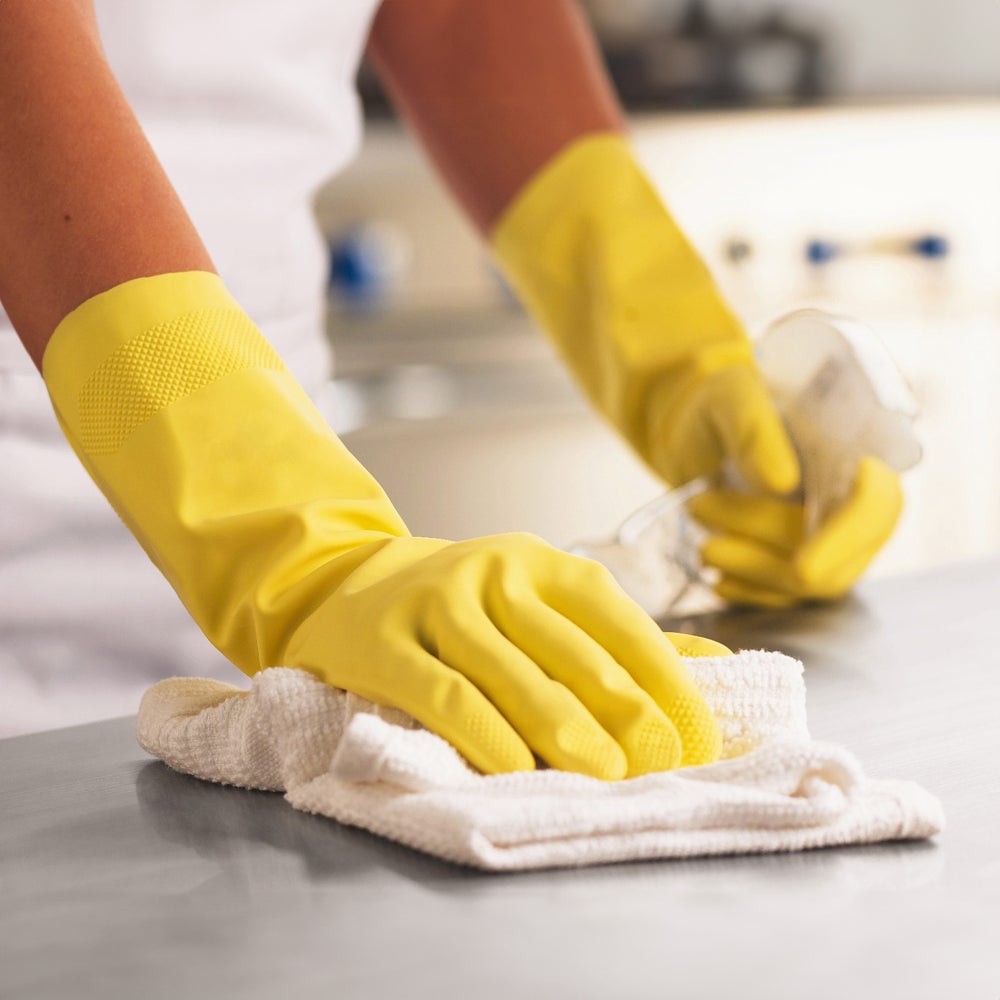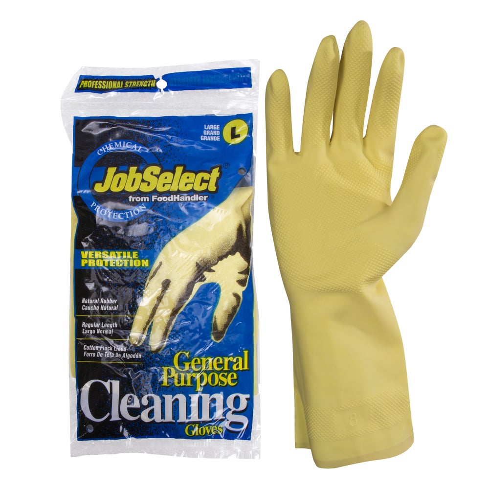 JobSelect Flock Lined Latex Gloves, Large, Yellow, 2 Pc, 1/Pair
