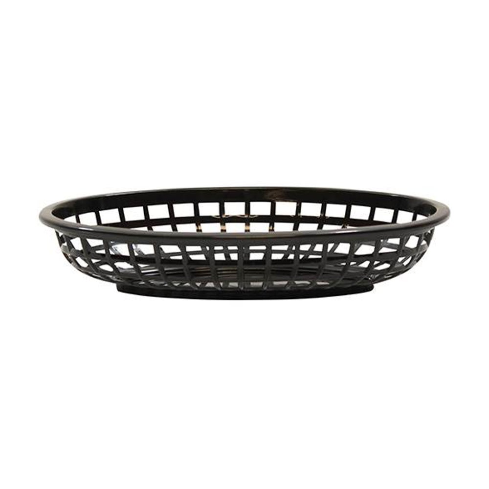 TableCraft Plastic Gunmetal Oval Baskets, 9.4 x 6 x 1.9 Inches, 12 Ct Package, 3/Case