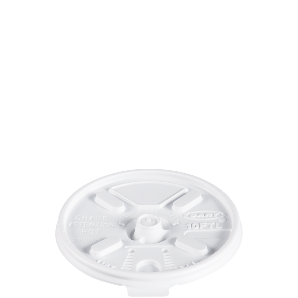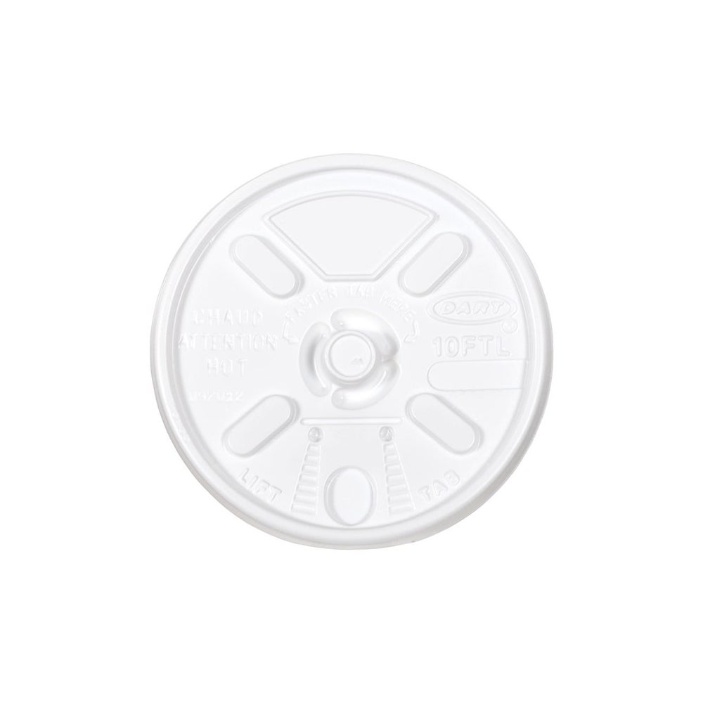 Dart Lift-and-Lock Plastic Lids, White, Polystyrene, for 10 Ounce Cups, 100 Ct Package, 10/Case