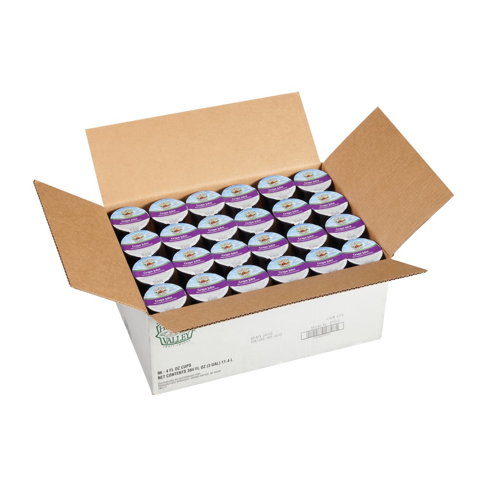 • Convenient and delicious! Made with 100% grape juice, these individual grape juice cups are measured into four-ounce serving sizes. These are the perfect single-serve portion and are great for all segments.