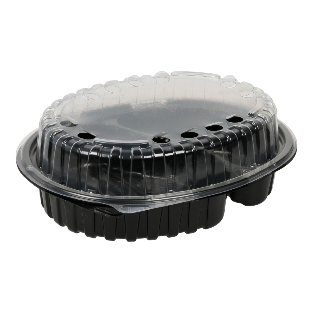 • CONT PLAS 2CMPT BLK W/LID 126CT | Raw Item