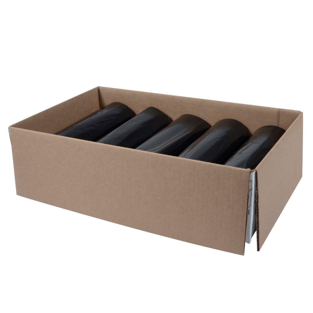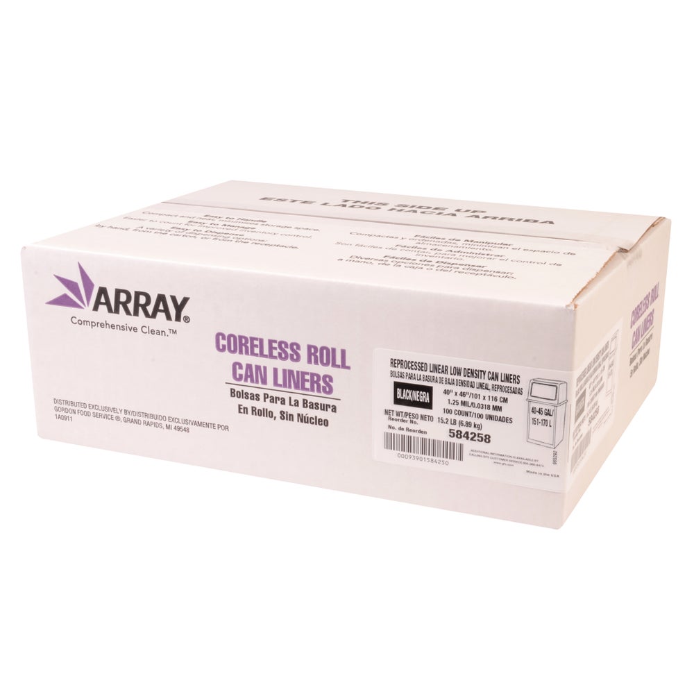 Array 40-45 Gallon Black Can Liners, Reprocessed, 1.25 Mil, 40 x 46 Inches, 20 Ct Roll, 5/Case