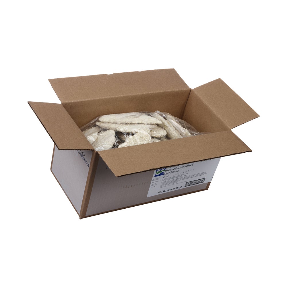 These wild-caught cod fillets feature a natural shape with a flaky, white flesh and breaded exterior. Each fillet weighs approximately 4 ounces.