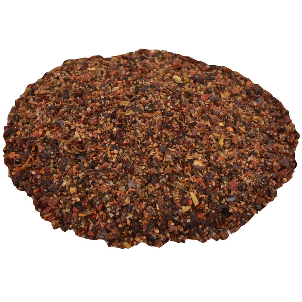 This seasoned pepper blend features black pepper, sugar, and sweet bell pepper which complements a variety of proteins, french fries, and chips.