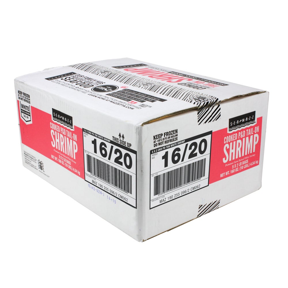Seamazz White Shrimp, Peeled & Deveined Tail-On, 16-20 Count per Pound, Cooked, IQF, 2 Lb Bag, 5/Case