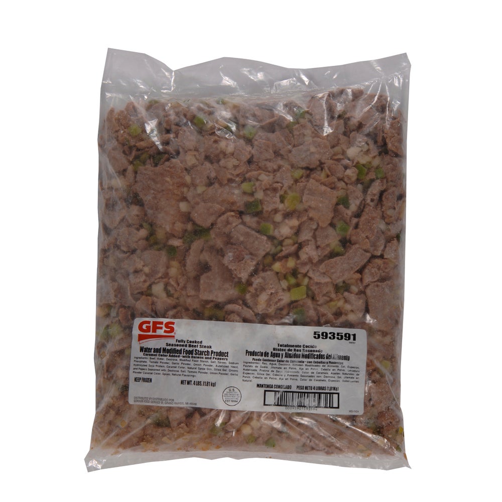 Gordon Choice Philly Beef Steaks, with Green Peppers & Onions, Sliced, Fully Cooked, Frozen Bulk, 4 Lb Box, 3/Case
