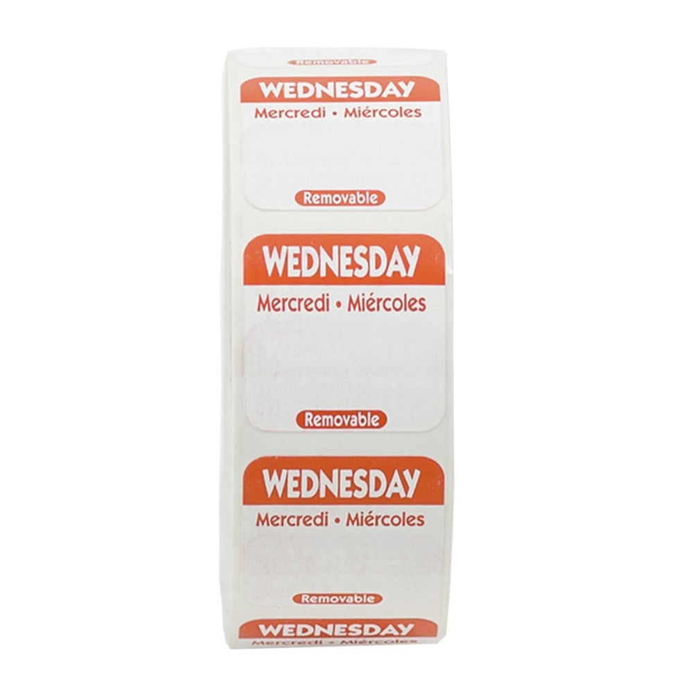 National Checking Company 1 x 1 Inch Removable Wednesday Labels, Red, 1000 Ct Roll, 3/Case