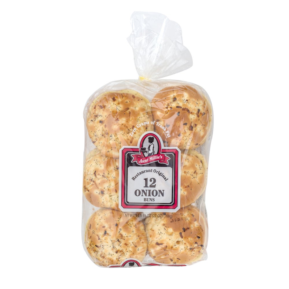 Aunt Millie's Bakehouse 4.5 Inch Onion Buns, Sliced, 12 Ct Bag, 1/Package